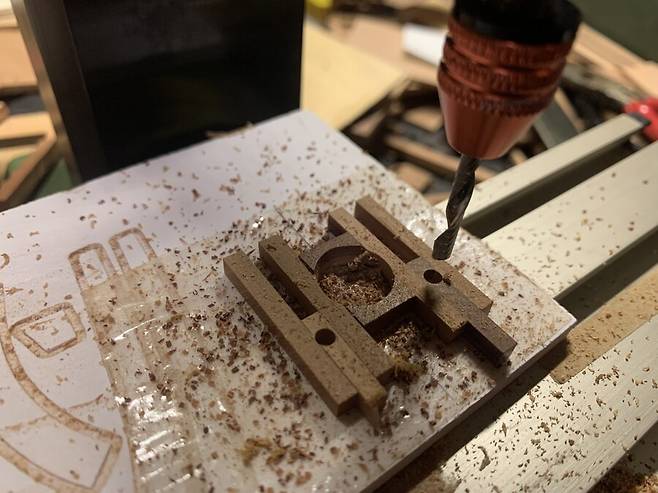 홈은 밀링으로 최대한 오류 없이 신중하게 가공했는데 역시나 세로 데크빔으로 전체적인 라인을 확인할때 너무 오류가 많아서 참 많이도 폐기하고 다시 만들기를 반복.