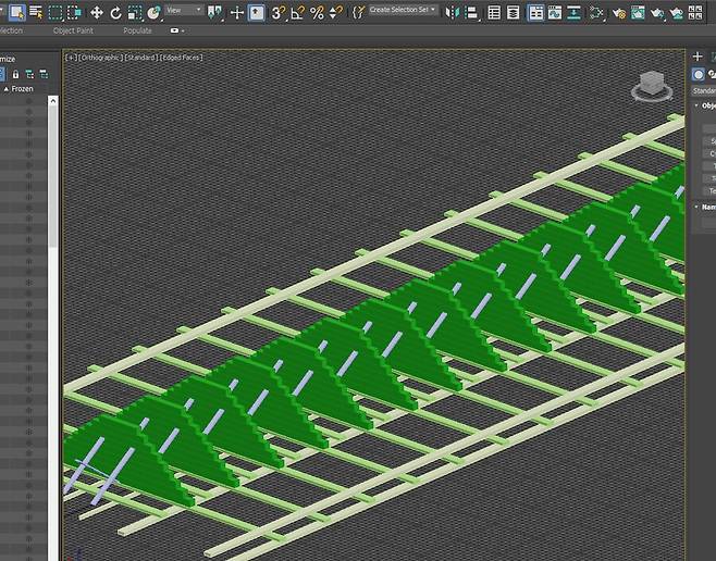 이 즈음 저는 기존에 만들어놓은 베이스가 너무 범선과 어울리지 않음을 아쉬워하여, 3d 로 몇가지 구상을 해보게 됩니다. 그중 하나는 실제 근대 유럽 도크에서 사용된 계단식 적층 구조의 함선 도크인데 이게 좀 어울리겠다 싶어 나무를 켜고 두께를 잡기 시작합니다.