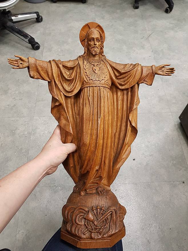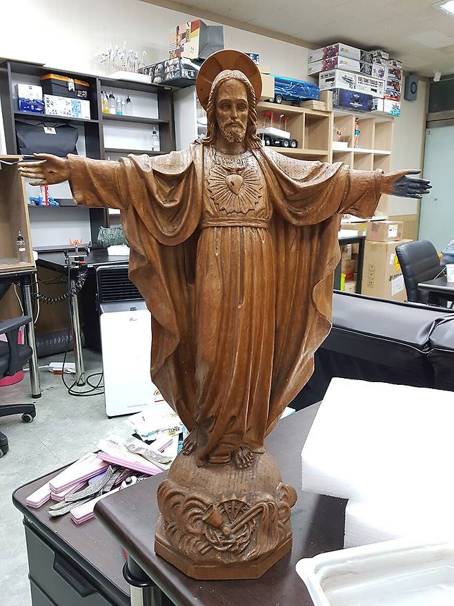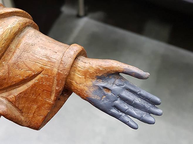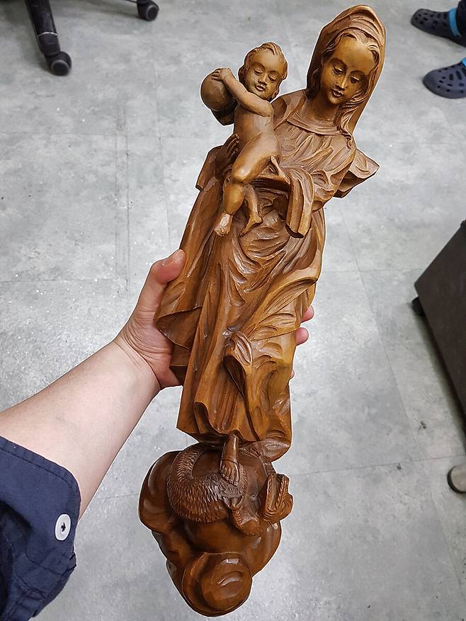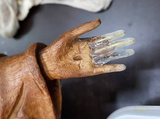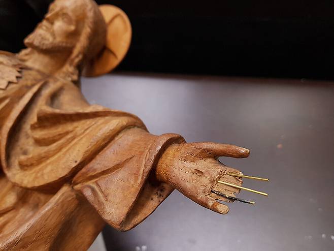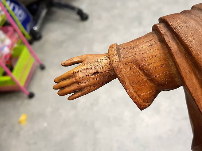 100여 년 전인 1920년대에 만들어진 제품인데 왼손 손가락이 부러져서 분실됐다 합니다.