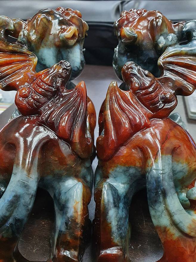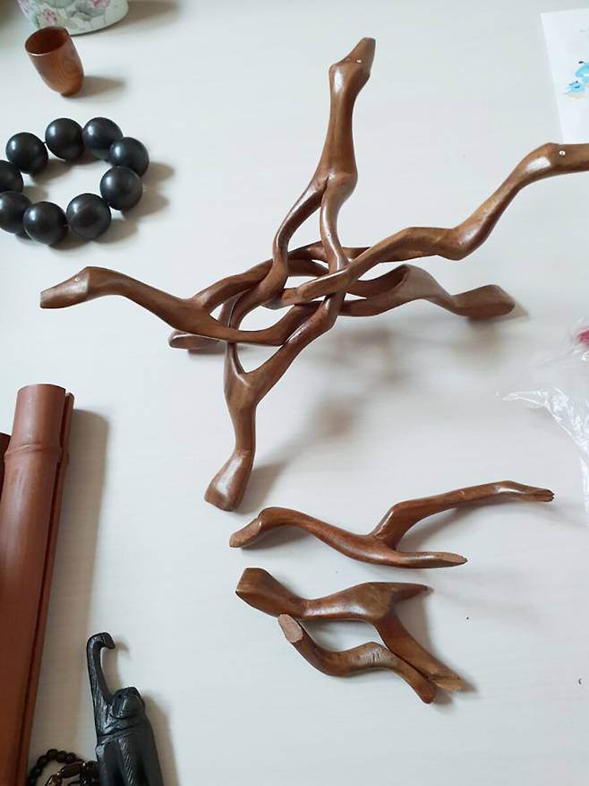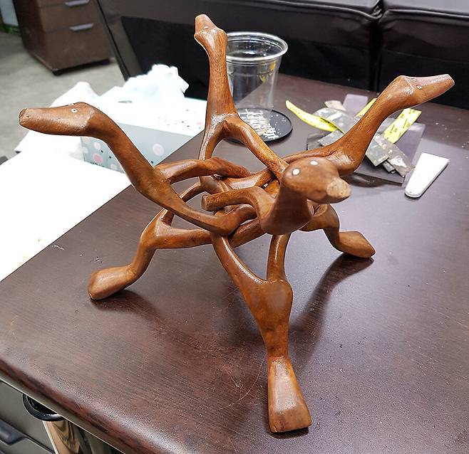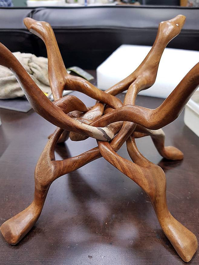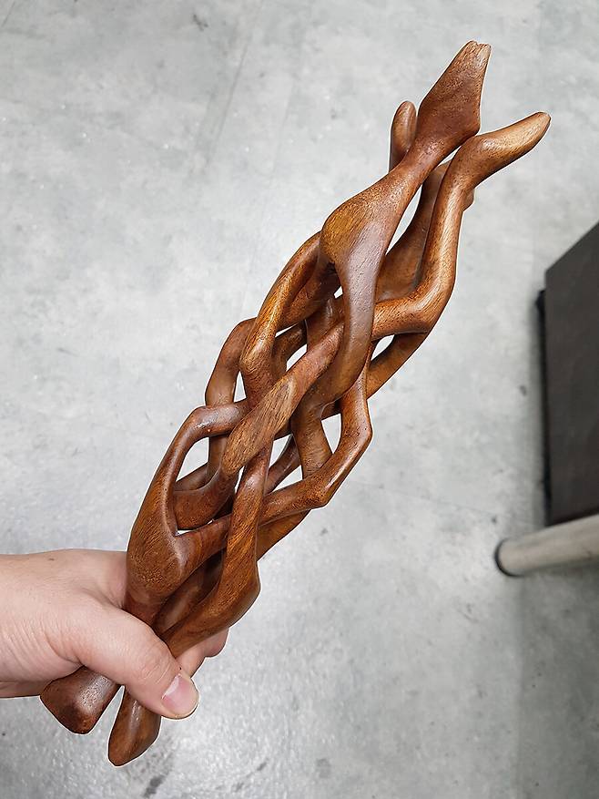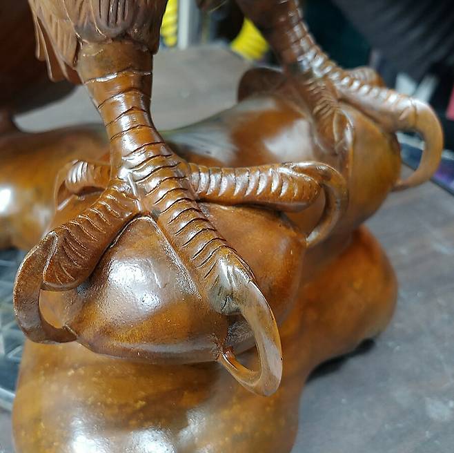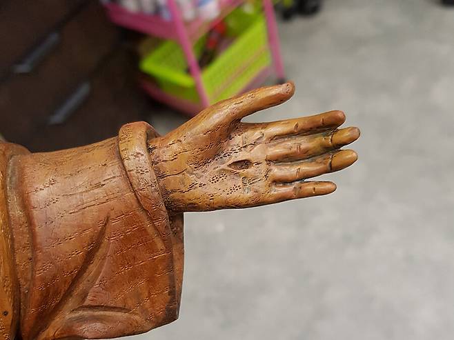 한 덩어리의 나무를 깎아서 모양을 만들었다 하는데 뭔지는 잘 모르겠지만 불심(?)이 엄청나게 들어간 제품으로 보입니다.