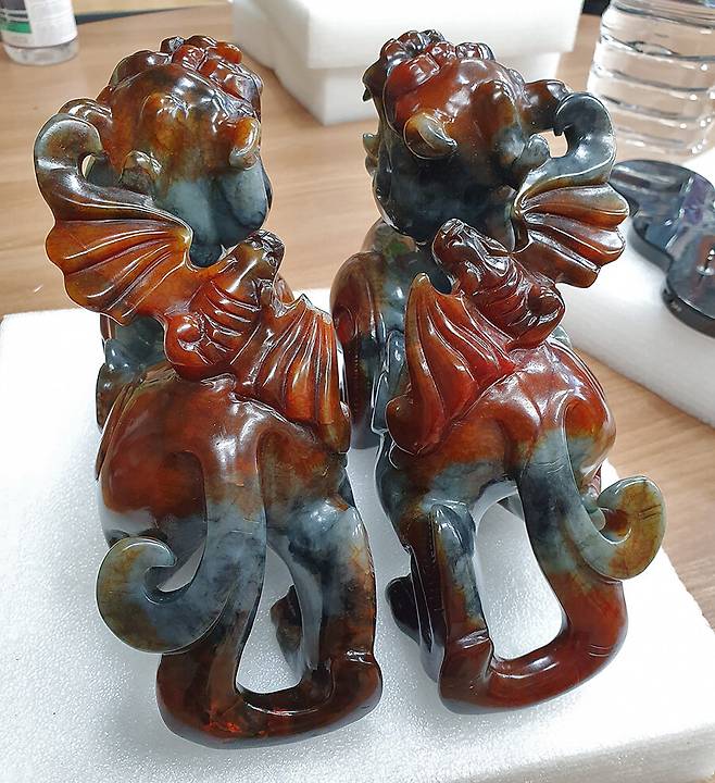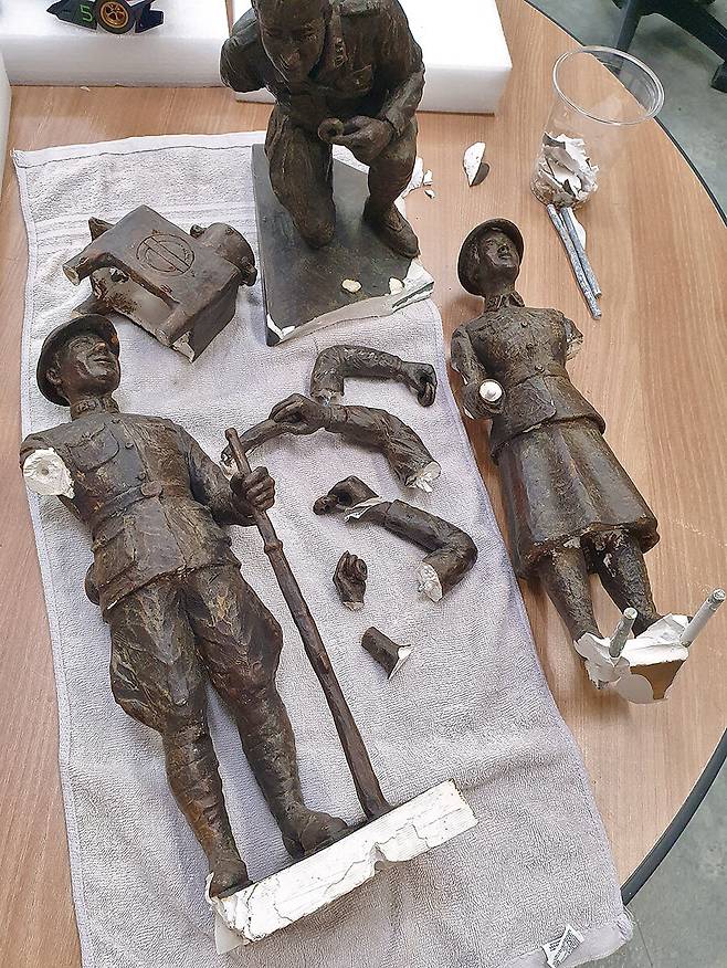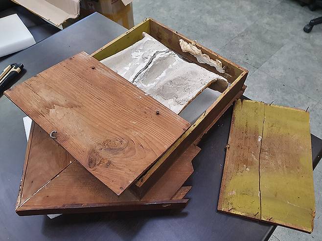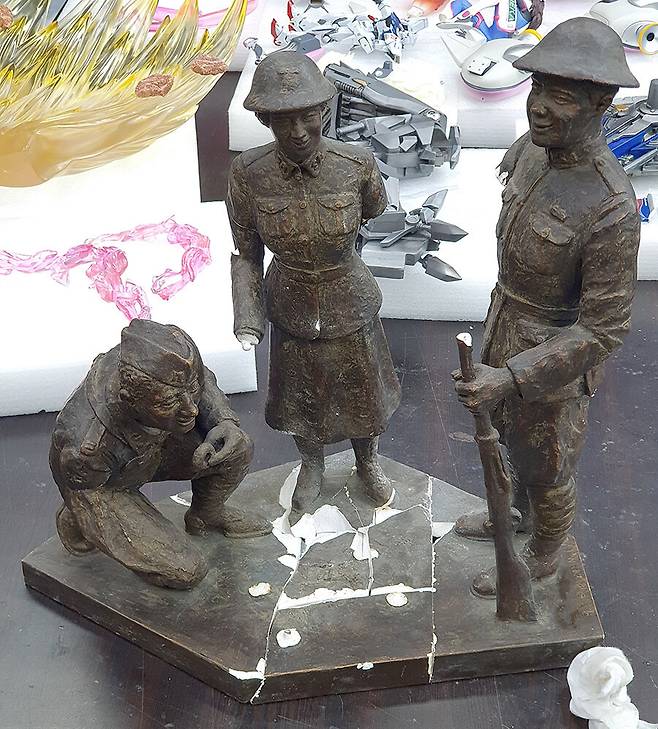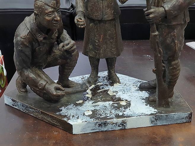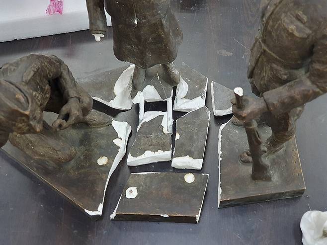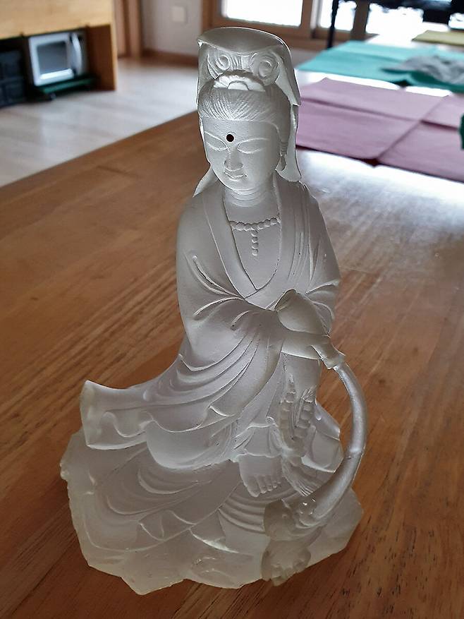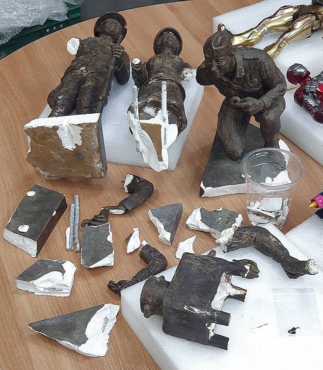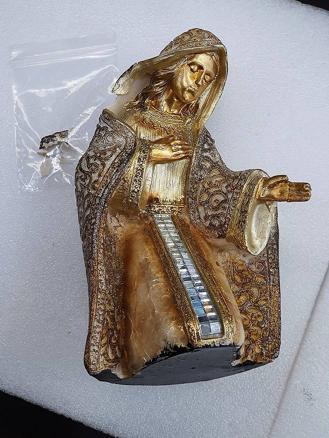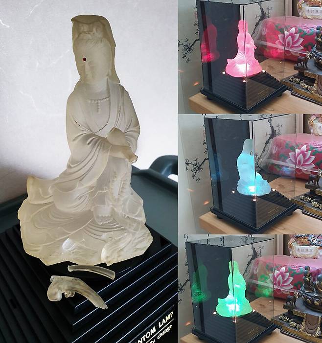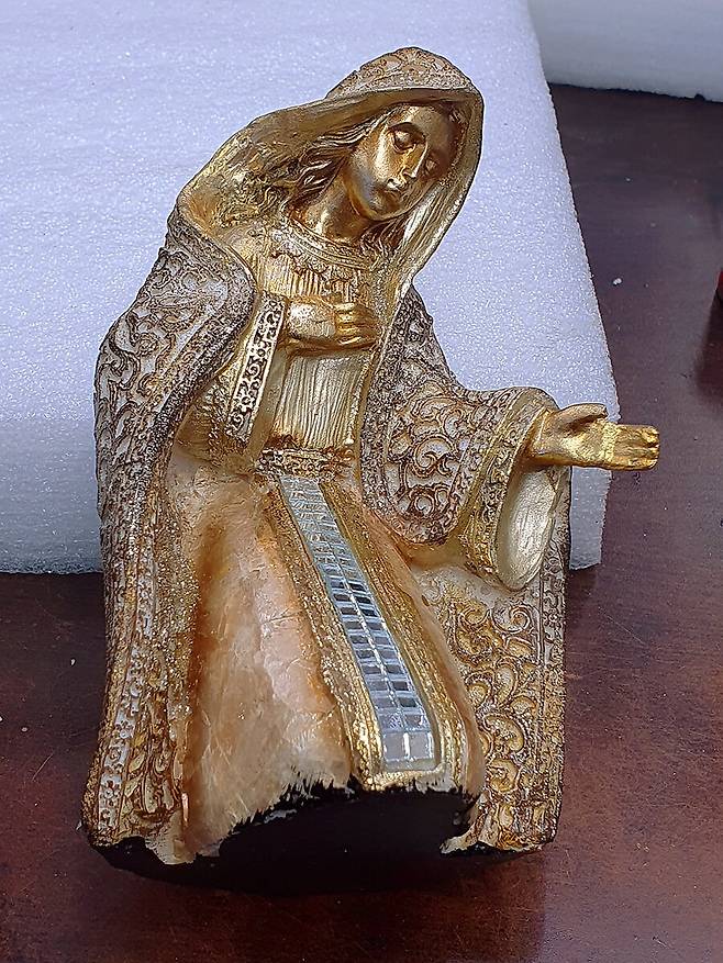 석고로 된 제품인데 실수로 떨어트리셔서 심하게 파손됐다 합니다.