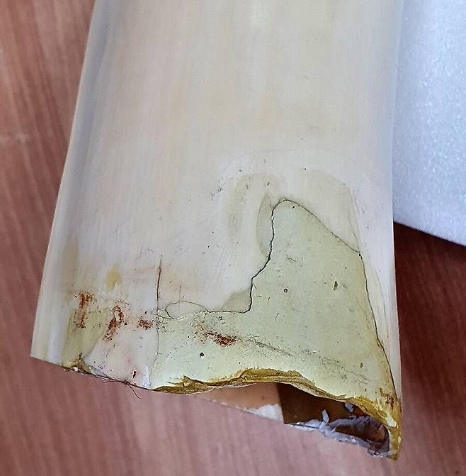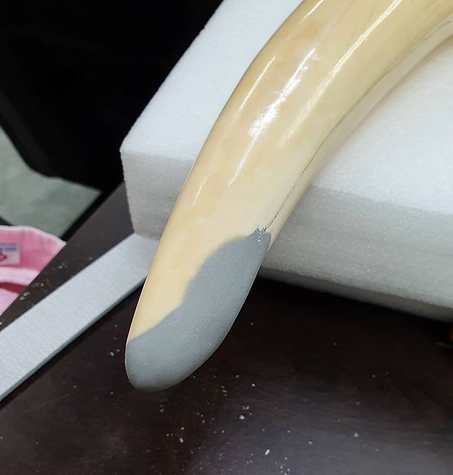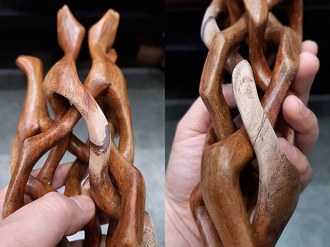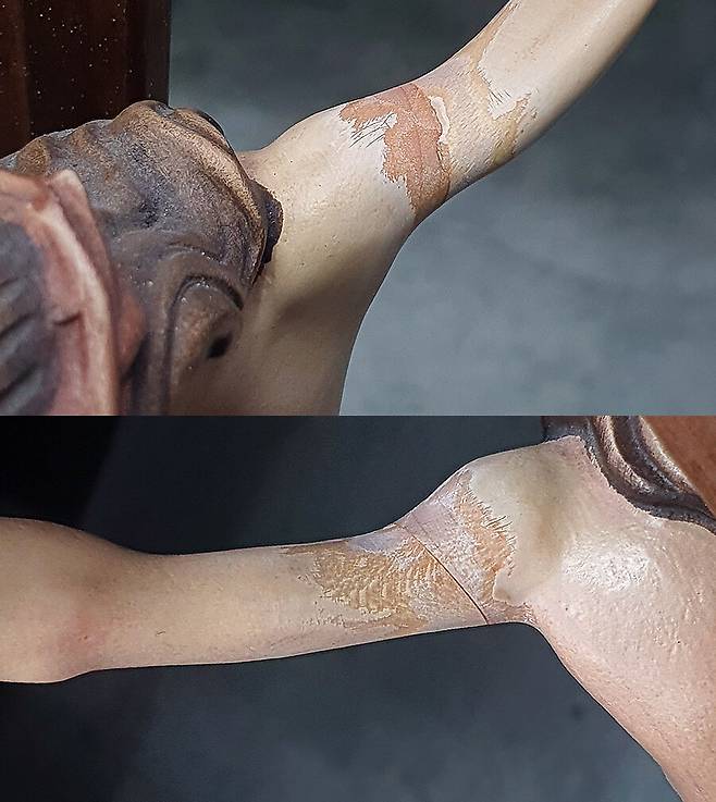 부러진 균열을 가리고 표면을 다듬은 뒤 상태 확인