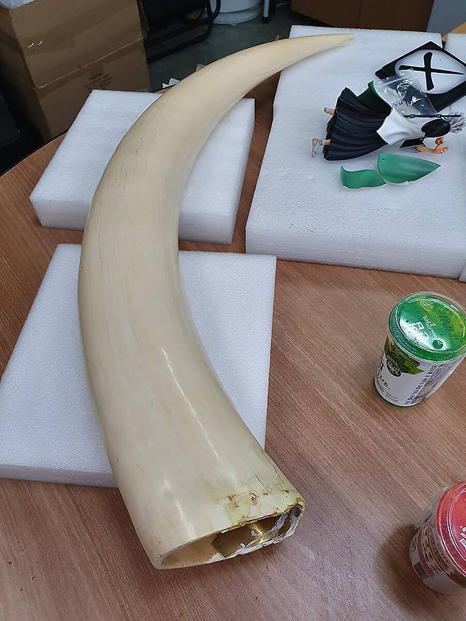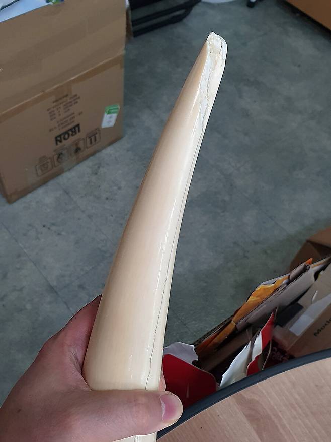 1975년 콩고에서 제작됐다는 보증서가 같이 들어있는 진짜 상아입니다.
