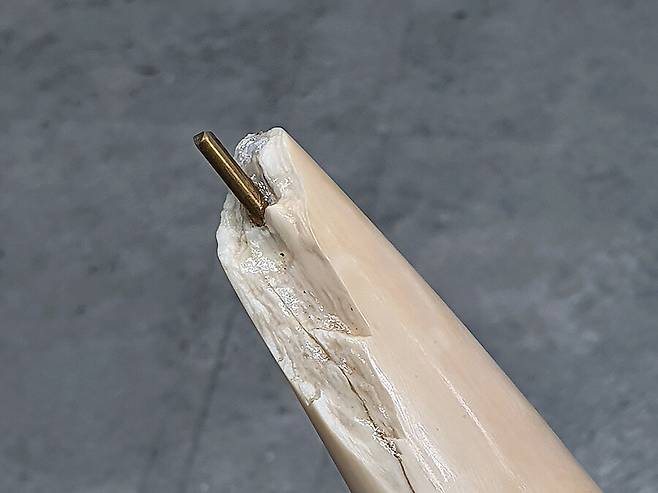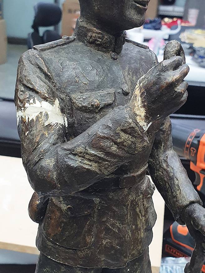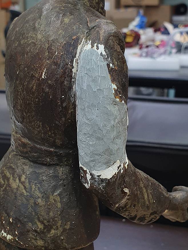 분실된 부분은 황동봉으로 뼈대를 만들어 준 뒤
