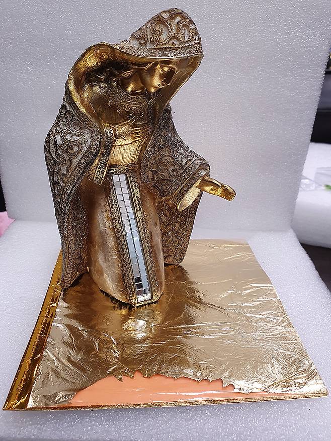 도색이 아닌 금박을 붙인 느낌이라서 금박을 사 와서 찍어 붙여줬습니다.