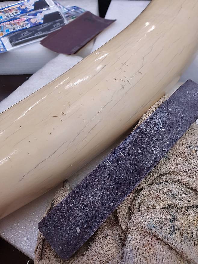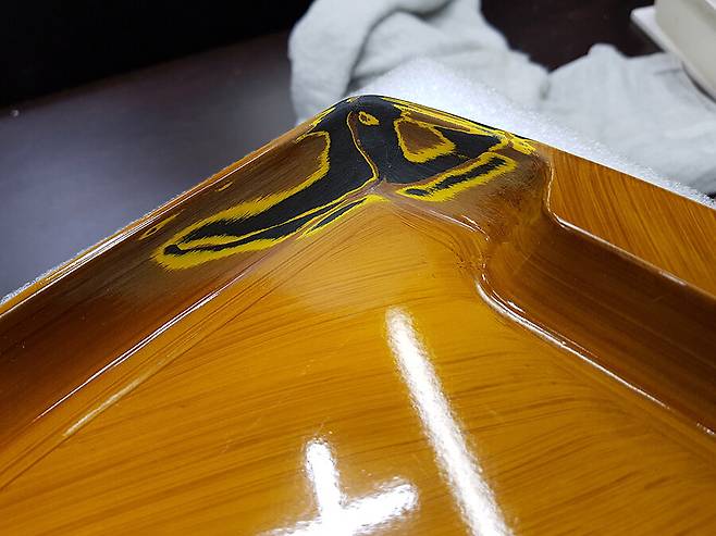 균열도 가려달라 하셔서 사포질을 하다 보니 치과에서 맡을 수 있는 이빨 갈리는 냄새 같은 게 나더군요 ㄷㄷㄷ