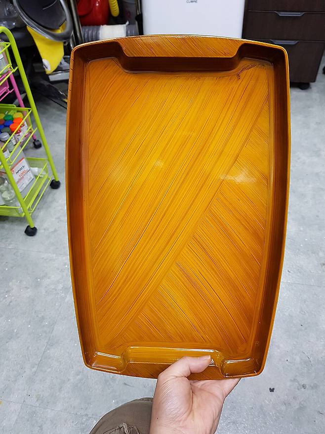 마지막은 7년 전인 2018년에 쟁반 귀퉁이를 사포질하고 있는 제 사진으로 마무리해 봅니다 ^^