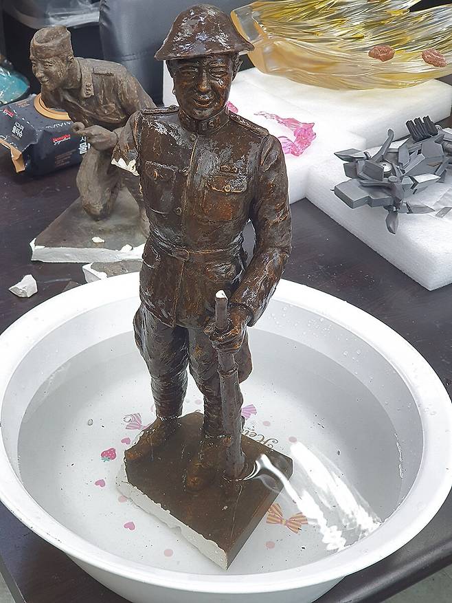 하지만 세월의 때가 너무 심하게 덮여 있어서 이대로는 작업이 불가능 해서 물로 씻어줬습니다.