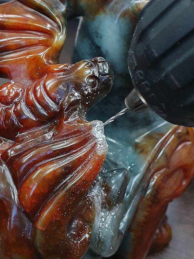 옥이 드릴로 잘 뚫릴까 했는데 매우 잘 뚫리더군요
