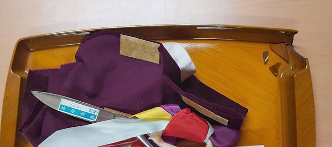 가위도 있고 한 걸 보면 국회 관련된 어떤 커팅식에 사용된 물품들 전체를 기념자료로 보관해둔 것 같네요