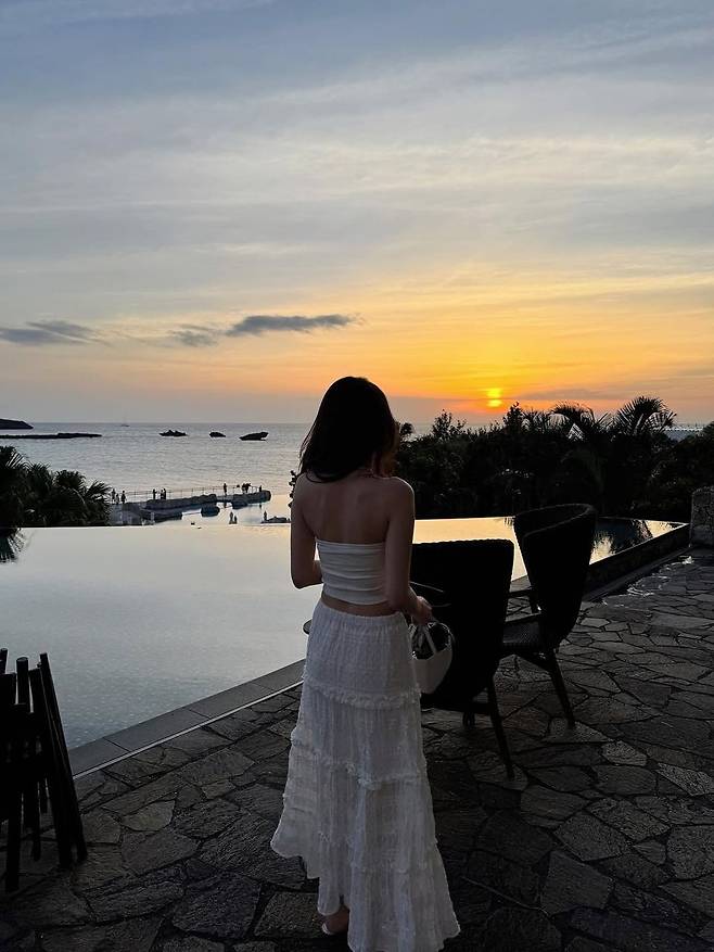 낭만적인 분위기를 담고 싶은 여름밤, 경리의 선셋룩으로 스타일링에 영감을 받아보는 건 어떨까.
