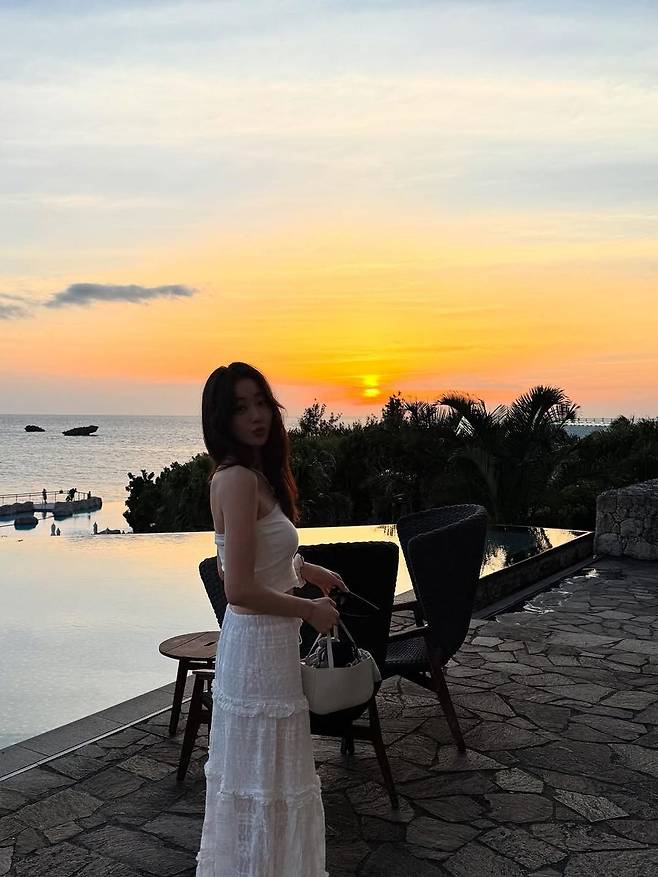 손에는 미니 화이트 백을 들어 스타일에 가볍고 경쾌한 포인트를 더했고, 내추럴한 웨이브 헤어는 석양빛과 어우러져 한 폭의 영화 같은 장면을 만들어냈다. 네티즌들은 “이 배경에 이 룩은 반칙”, “그림이 살아 움직이는 줄”이라며 감탄을 아끼지 않았다.