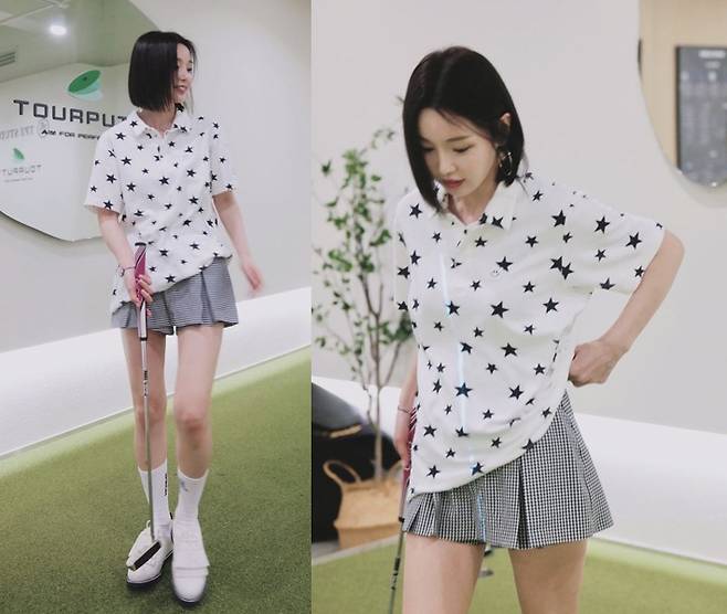 또, 남규리는 블랙 앤 화이트 체크 패턴 미니스커트를 착용해 러블리하고 스타일리시한 코디를 완성했습니다.