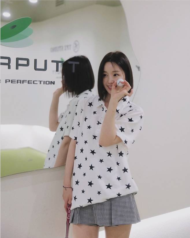남규리는 별무늬 카라티를 착용해 귀엽고 상큼한 미모를 자랑했습니다.