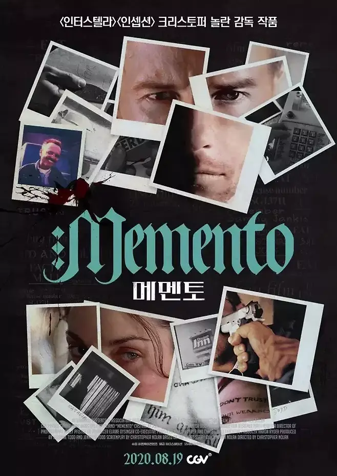 크리스토퍼 놀란을 유명하게 만든 대표작이라고도 부를 수 있는 작품이다. 그의 동생 조나단 놀란의 소설을 바탕으로 만들어진 영화이다. 아마 놀란을 좋아하는 사람이라면 몇 번이고 메멘토를 반복해서 봤을거다. 영화는 시간을 역행하는 독특한 구조이며, 단 10분밖에 기억하지 못하는 선행성 기억상실증을 가진 주인공의 이야기를 보여준다. 흑백으로 나오는 과거와 역순으로 전개되는 현재의 시간이 교차되며 전개되는데 이를 따라가다 보면 점점 놀란이 만들어낸 이야기 속으로 빠져들게 된다. 아마 마지막 현재 장면이 시작될 때, 어느새 기억상실에 걸린 주인공과 동화된 자신을 만나게 될 수 있을지도 모른다.