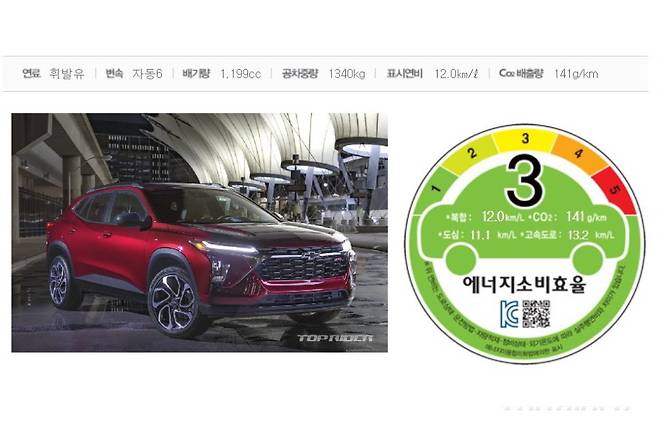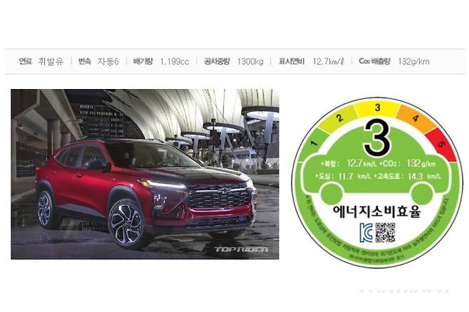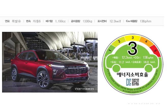 쉐보레 신형 트랙스의 국내 연비와 제원이 공개됐다. 트랙스 모델명으로 국내 인증을 끝낸 모델은 쉐보레 차세대 CUV로 최고출력 139마력을 발휘하는 1.2리터 3기통 가솔린 터보 엔진이 얹어졌으며, 복합연비는 최대 12.7km/ℓ다. 신형 트랙스는 올해 봄 출시될 예정이다.