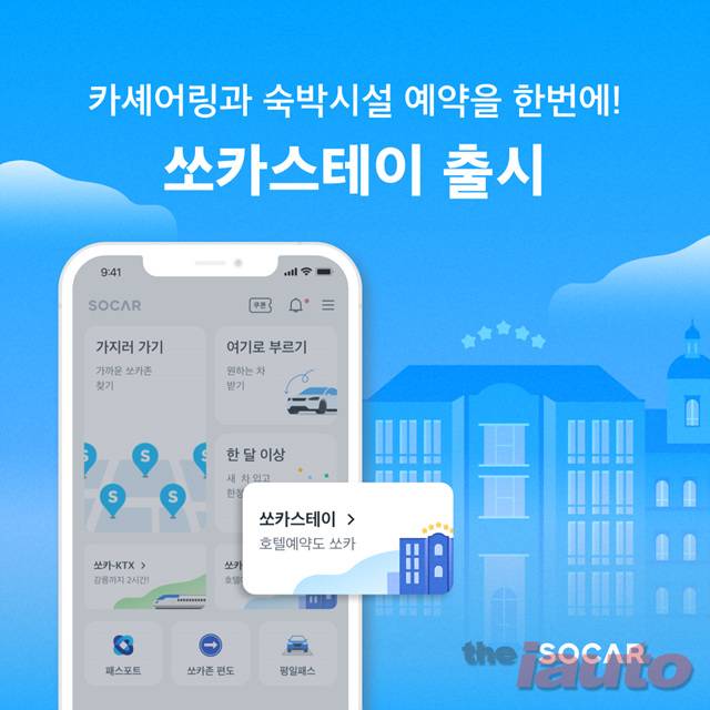 모빌리티 혁신 플랫폼 (주)쏘카(대표 박재욱)는 카셰어링과 전국 25,000개 호텔&리조트 예약이 동시에 가능한 ‘쏘카스테이’를 정식 출시한다고 22일 밝혔다. 고객은 본 서비스를 통해 여행, 비즈니스 출장 등 목적에 따라 하나의 앱으로 가장 가까운 쏘카존의 카셰어링과 전국에 위치한 다양한 호텔, 리조트 등의 숙박시설을 조회⋅예약⋅결제까지 할인된 금액으로 이용할 수 있다.