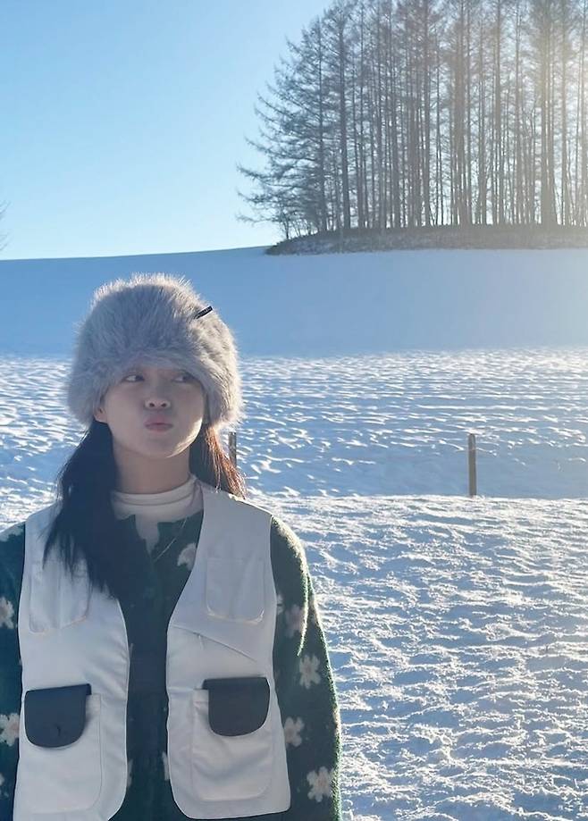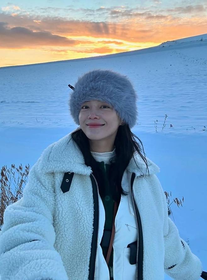 공개한 사진에서 김세정은 샤프카 햇을 쓰고 플리스 재킷을 걸친 여행룩으로 따뜻하면서도 포근한 눈의 나라 여행 스타일을 선보였다.