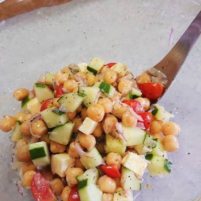 점심: 병아리콩 샐러드 + 표고버섯된장국 + 현미밥