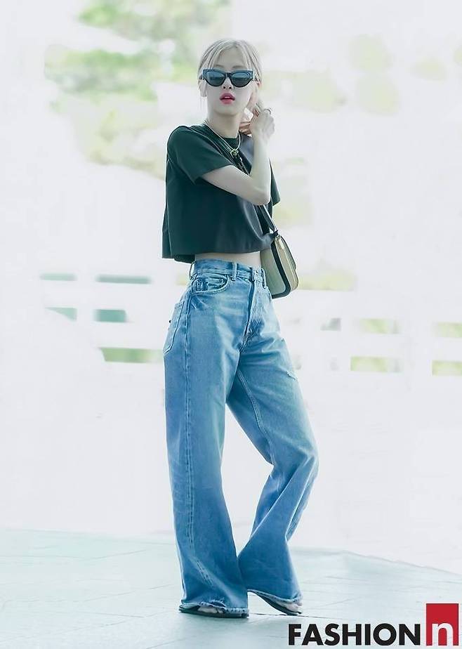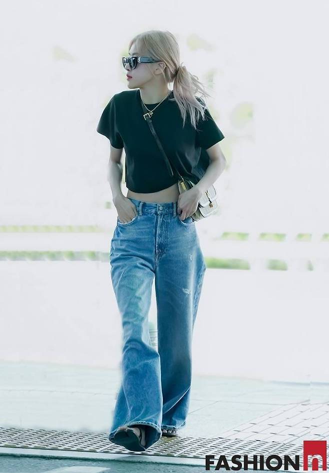 4. 블랙핑크 로제는지난 7월 런던 출국길에 복근이 드러난 짧은 기장의 블랙 베이비 티셔츠와 보이프렌드 핏 청바지를 매치한 스타일리시한 공항패션으로 시선을 강탈했다.