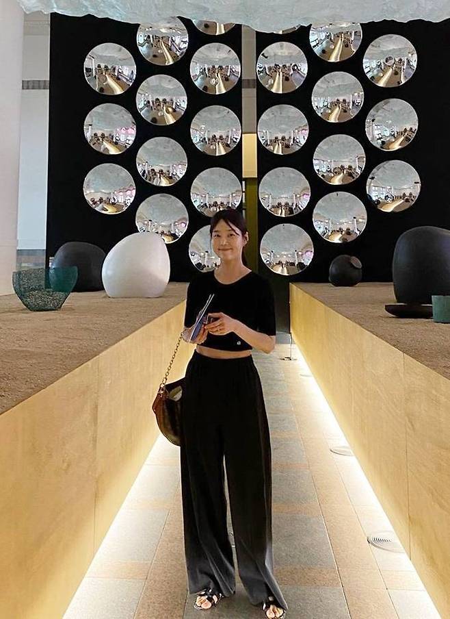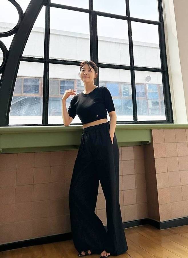11. 배우 한지혜는 다소 절제된 블랙 베이비 티셔츠와 블랙 팬츠를 매치한 여름 데일리룩을 선보였다.