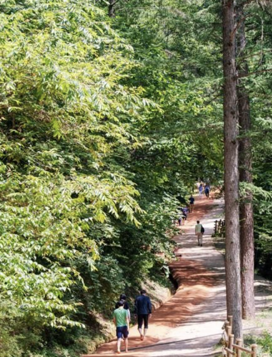 압도적인 스케일: 계족산 황톳길의 총 길이는 약 14km에 달합니다. 굽이굽이 이어지는 산길을 따라 붉은 황토가 끝없이 펼쳐진 모습은 그 자체로 장관이며, 전국 최대 규모라는 타이틀에 걸맞은 위용을 보여줍니다.