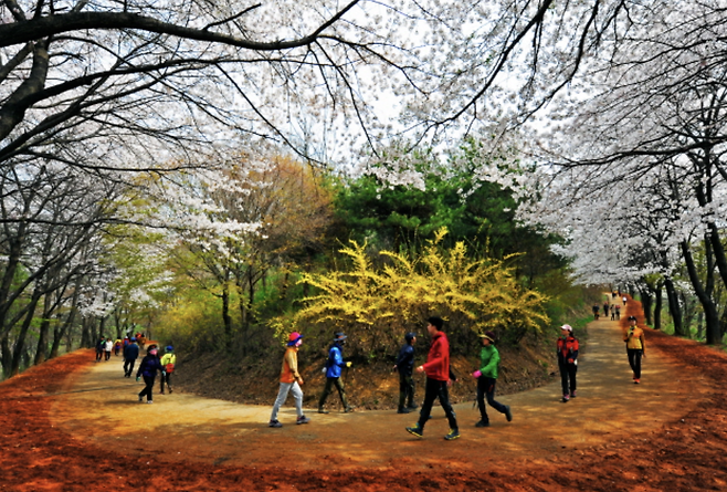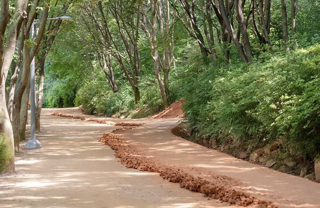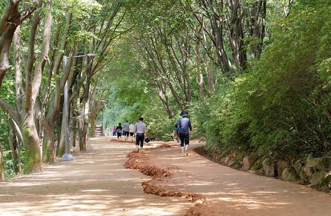 장동산림욕장 입구에서 시작해 임도 삼거리까지 이어지는 코스가 가장 인기입니다.