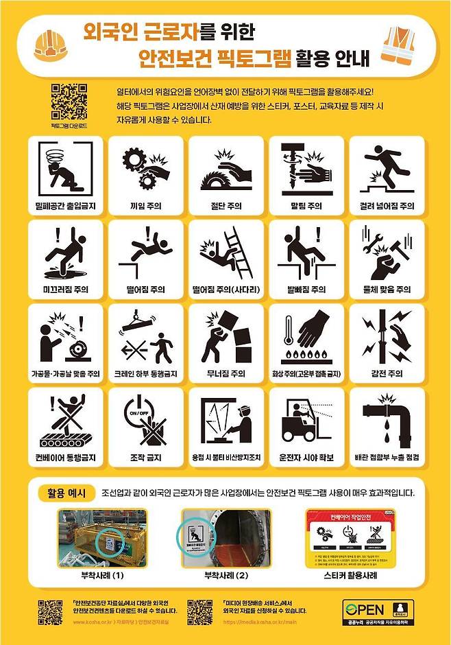 "외국인 근로자도 위험요인 알기 쉽게"…안전보건 픽토그램 배포