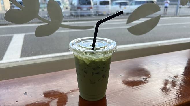 무진장 달았지만 땡볕에서 땀을 빼서인가 쭉쭉 잘 들어갔던 말차 라테.