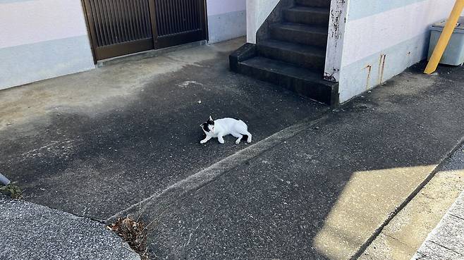 자전거를 반납하고 골목으로 걸어 다니다 발견한 고양이.