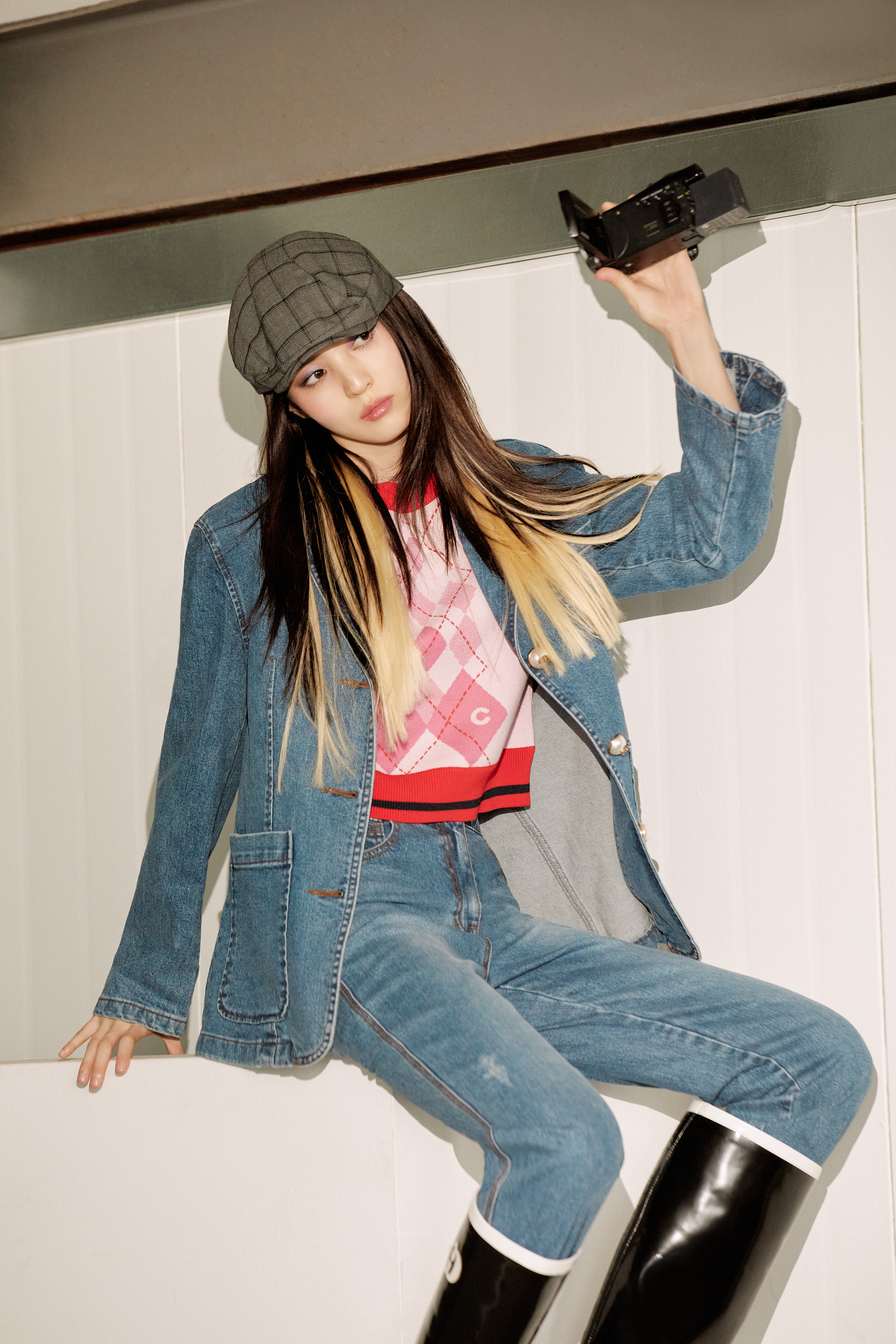 청청 패션을 완벽 소화한 화보와 더불어 체크 자켓