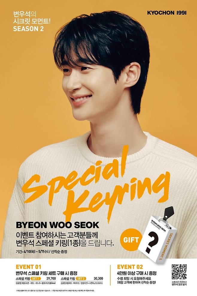 교촌에프앤비㈜는 10일, 브랜드 모델 변우석의 매력을 담은 '시크릿 모먼트 시즌2' 한정판 스페셜 키링 증정 이벤트를 시작한다고 밝혔다.