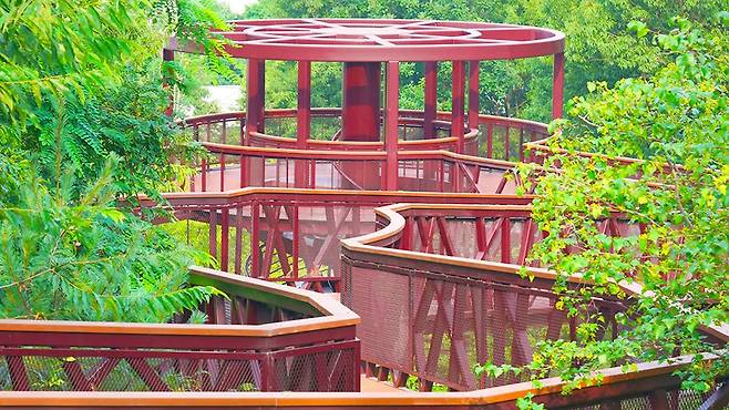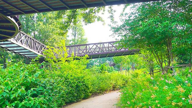 공원 탐방은 목재 데크로 조성된 무장애나눔길에서 시작된다. 약 1.5km 구간은 경사가 완만해 휠체어나 유모차도 편하게 오를 수 있으며, 중간에는 발아래가 보이는 유리 바닥 스카이워크도 있다.