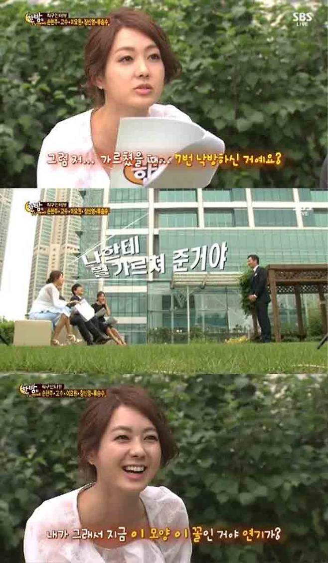 여기서 이요원은 류승수가 자신을 가르치기 전 탤런트 공채 시험에서 7번 낙방했었다는 사실을 알게 됩니다.