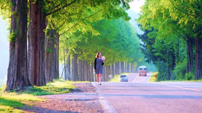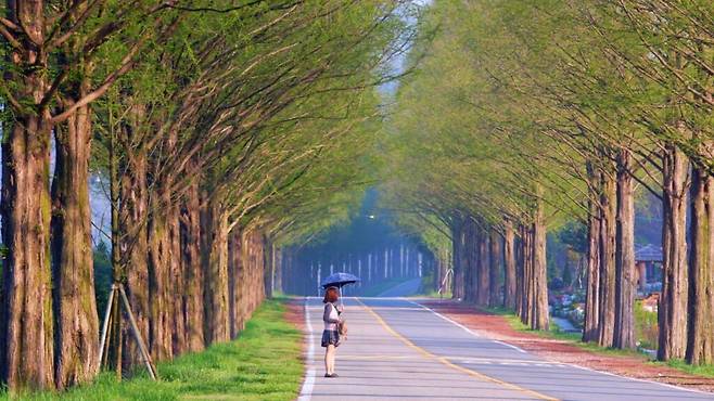 직선으로 뻗은 도로 양옆에 빼곡히 들어선 메타세쿼이아는 여름이면 짙은 녹음으로 터널을 이루고, 나무 사이로 드는 햇빛이 만들어내는 그림자는 차창 너머를 스치는 풍경 하나하나에 생기를 불어넣는다.