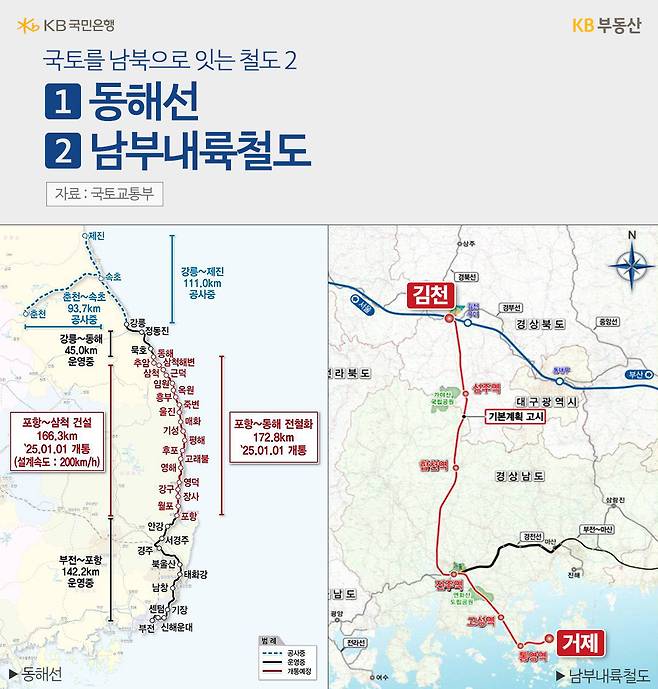 국토를 남북으로 잇는 ‘동해선’, ‘남부내륙철도’