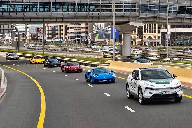 세계에서 가장 화려한 자동차들이 활약하는 두바이 경찰이 올해 새로운 순찰차로 영국 로터스의 고성능 전기 SUV '엘레트라 R'을 도입했다. 이미 람보르기니, 부가티, 페라리 등 동급 슈퍼카를 공식 보유한 두바이 경찰청은 이번 결정으로 순찰·추격 임무의 기술적·기동적 한계를 한층 더 끌어올렸다. 고급 차량 도입 자체가 두바이 치안 당국의 강력한 이미지와 기동력, 첨단 기술 도입 의지를 상징한다.