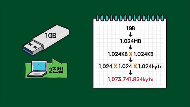 여기까지 용량 단위 개념을 이해했다면 저장장치 중 접하기 쉬운 USB 플래시 드라이브를 이용하는 상황에서 이야기해보겠습니다.