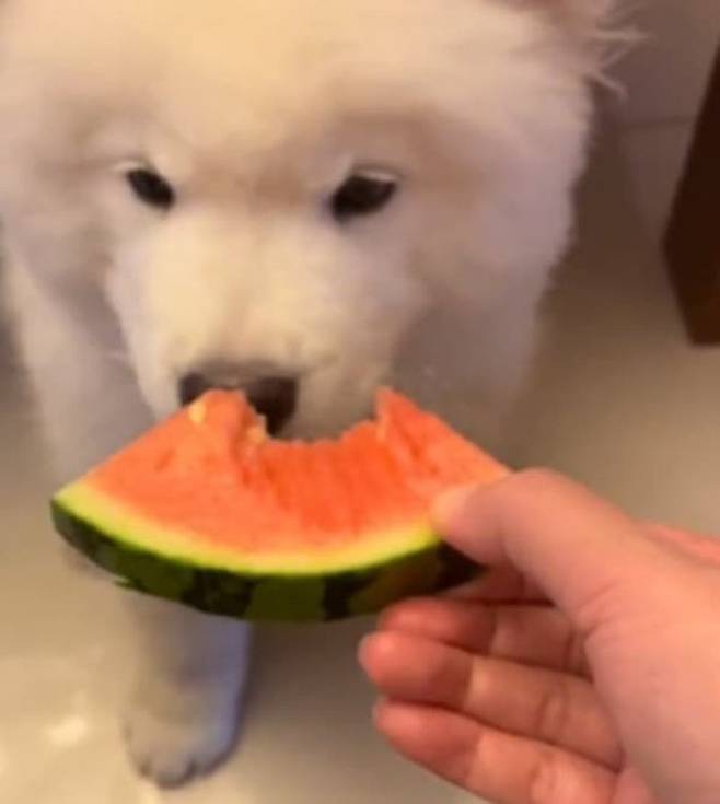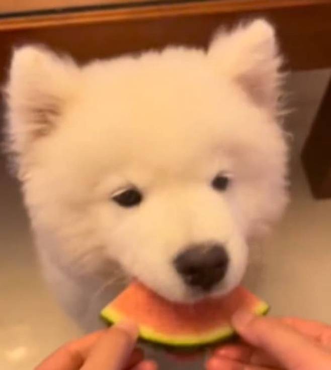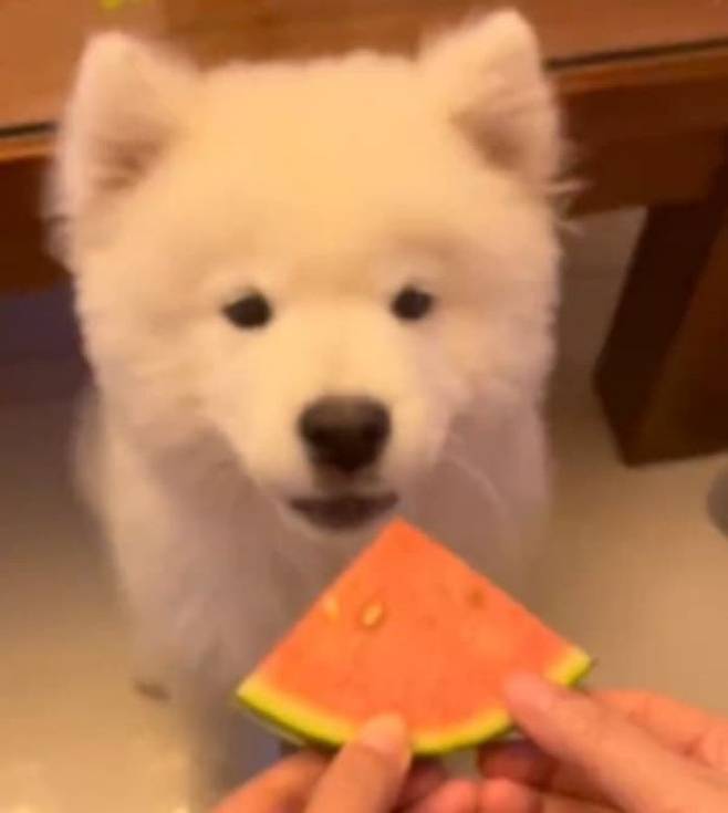 사연은 이렇습니다. SNS상에는 복슬복슬 새하얀 털이 매력적인 사모예드 강아지의 수박 먹방이 담긴 영상이 올라온 것.