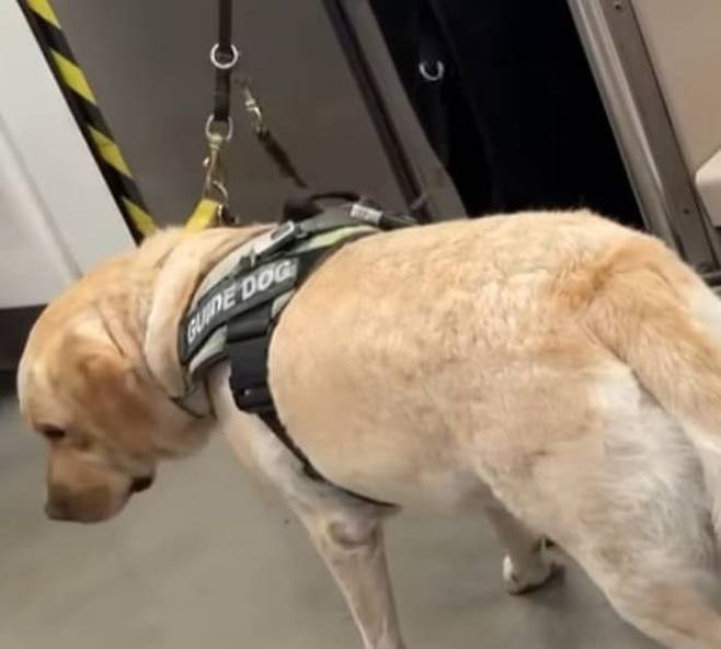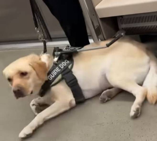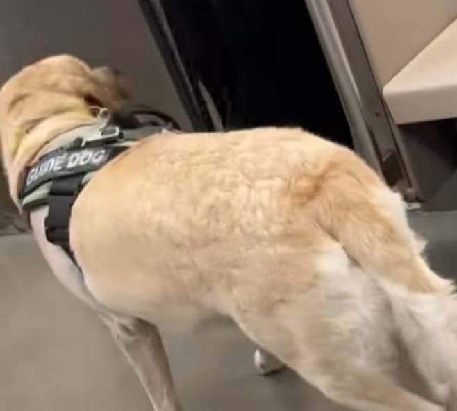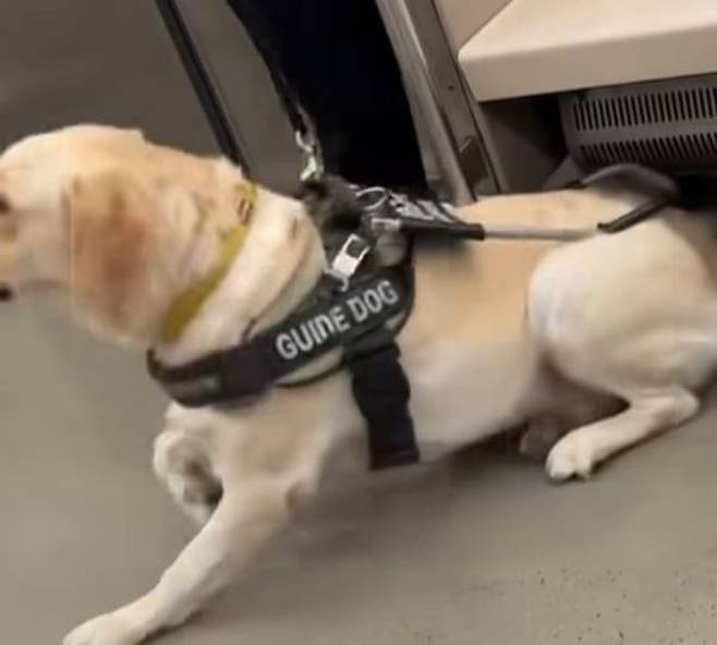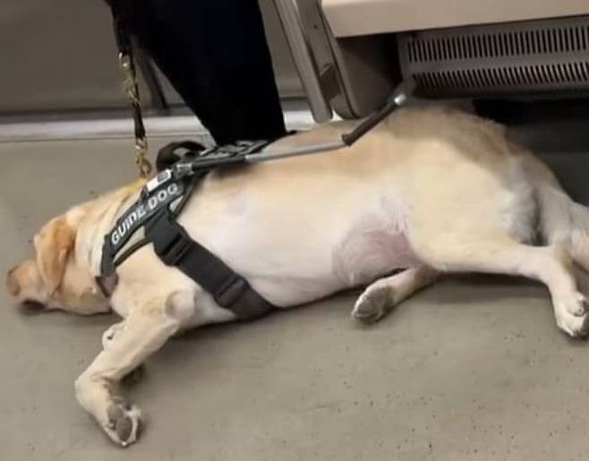 다만 벌떡 일어나는 과정에서 손잡이가 좌석 옆 칸막이에 걸리는 일이 벌어졌고 이를 본 승객이 도와줘서 안내견은 무사할 수 있었다고 하는데요.