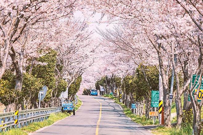 이곳의 가장 큰 매력은 마을을 따라 이어지는 벚꽃터널이다. 도로 양쪽으로 오래된 벚나무들이 줄지어 서 있어 꽃이 만개하면 자연스럽게 터널 형태를 이루며 장관을 만들어낸다. 차를 타고 천천히 지나가며 드라이브를 즐기기에도 좋고, 걸으며 여유롭게 풍경을 감상하기에도 적합하다.