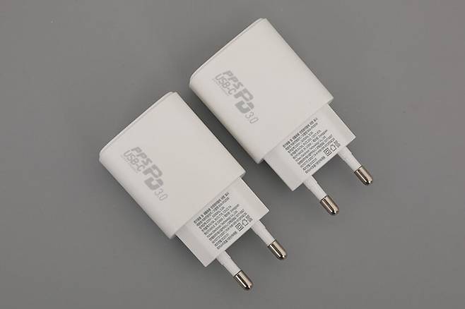 뒷면에는 PD 3.0과 PPS 등 지원 사양이 인쇄되어 있으며, 커넥터 부위에 인쇄된 모델명과 정격 출력으로 20W 모델과 25W 모델을 구분할 수 있다.