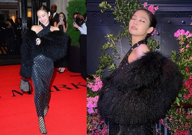 또, 제니는 블랙 퍼 재킷을 착용해 화려하고 기품 있는 분위기를 자아냈습니다.