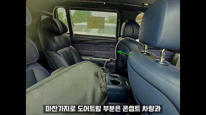 도어 트림 역시 콘셉트카와 매우 흡사한 디자인을 채택해 제네시스 전기차 라인업의 새로운 디자인 언어를 분명히 보여주고 있다. 크롬 라인은 루프를 따라 차량 후면까지 이어지며 실내에 고급스러운 통일감을 부여한다.