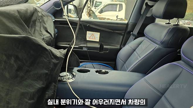 최근 포착된 GV90의 실내 사진에 따르면, 기존에 공개됐던 콘셉트카의 디자인 요소가 상당 부분 양산 모델에 반영된 것으로 확인됐다. A필러에 장착된 크롬으로 감싸진 스피커와 독특한 시트 디자인은 콘셉트카에서 선보였던 미래지향적 감성을 그대로 유지하고 있다.
