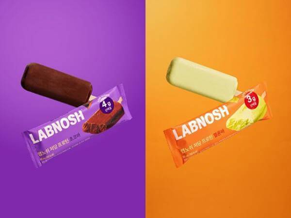 단백질 간편식 브랜드 랩노쉬는 당은 낮추고 단백질 함량을 높인 건강 아이스크림 ‘랩노쉬 저당 프로틴바’ 2종을 출시했다. 랩노쉬 저당 프로틴바는 설탕 대신 대체당을 사용해 당류 함량을 2g까지 낮췄으며, 단백질과 식이섬유를 더해 건강까지 고려한 것이 특징이다. 신제품은 고급스럽고 진한 풍미의 초코맛과 부드럽고 달콤한 과즙향이 가득한 멜론맛의 2종이다. 저당 프로틴 멜론바에는 단백질 3g, 식이섬유 4g이 함유됐다. 편의점 기준 판매가는 3,000원이다.