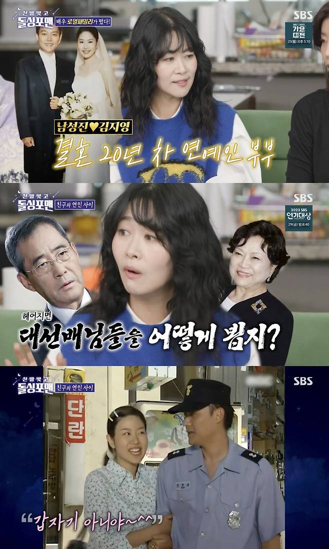 배우 남일우, 김용림 부부의 아들인 남성진과 결혼한 지 20년이 된 김지영은 남성진의 프러포즈를 받았을 당시 주저했다고 털어놨습니다. 그는 “결혼 전에 일단 사귀고 봐야 하잖나 사귀었다가 헤어질 수도 있잖나 헤어지면 촬영장에서 어떻게 두 분을 만날 수 있을까 뒷골이 서늘해졌다"며 시부모님을 언급했습니다.
