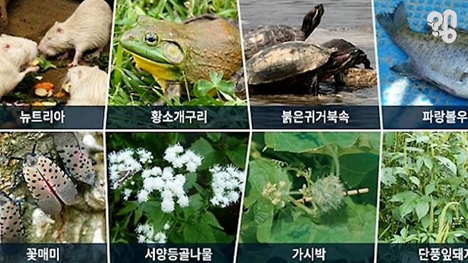 생태계 교란종은 기존의 토종 생태계를 교란할 만큼의 강한 적응력과 번식력을 가진 동물과 식물. 1998년 환경부가 황소개구리, 뉴트리아, 큰입배스, 파랑볼우럭(블루길)을 처음으로 생태계 교란 생물로 지정했고, 이후 매년 지속적으로 추가하며 현재는 동물 20종과 식물 17종 등 총 37종이 있다. 동물 중에는 곤충류와 파충류가 가장 많은데 곤충은 등검은말벌 붉은불개미 꽃매미 등 8종이고 파충류는 대부분 거북이들인데 리버쿠터 늑대거북 악어거북 등 6종이 있다.