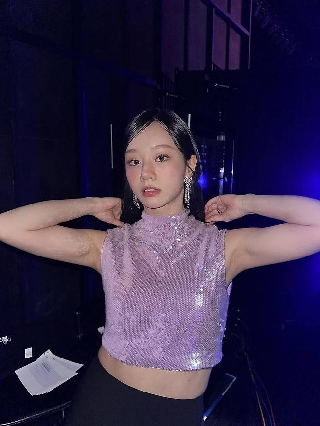 <Welcome to HYERI’s Studio> 서울 공연 백스테이지에서 포착된 혜리의 사진이 팬들의 시선을 끌고 있다. 반짝이는 조명 아래 라벤더 컬러의 시퀸 크롭탑을 입은 그녀는 빛나는 무대만큼이나 눈부신 비주얼로 화제를 모았다.