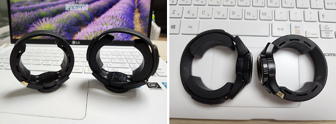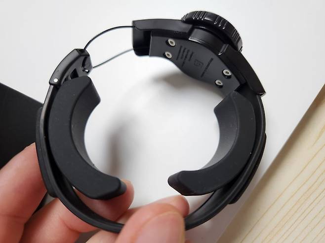 이 부분은 이전 리뷰와 동일합니다. 재질은 강화된 경량 플라스틱과 밴드 부분은 부드러운 TPE 소재로 손목의 두 뼈를 미끄러지지 않고 잘 잡아주네요. 손목시계 차는 부분에 놓고 위부분 다이얼로 조이는 방식은 같으며, 이전 모델보다 더 가볍게 느껴집니다. 이런 점과, 부드러운 TPE 밴드는 장시간 착용해도 편했고 샤워해도 전혀 문제없다는 점이 좋네요.
